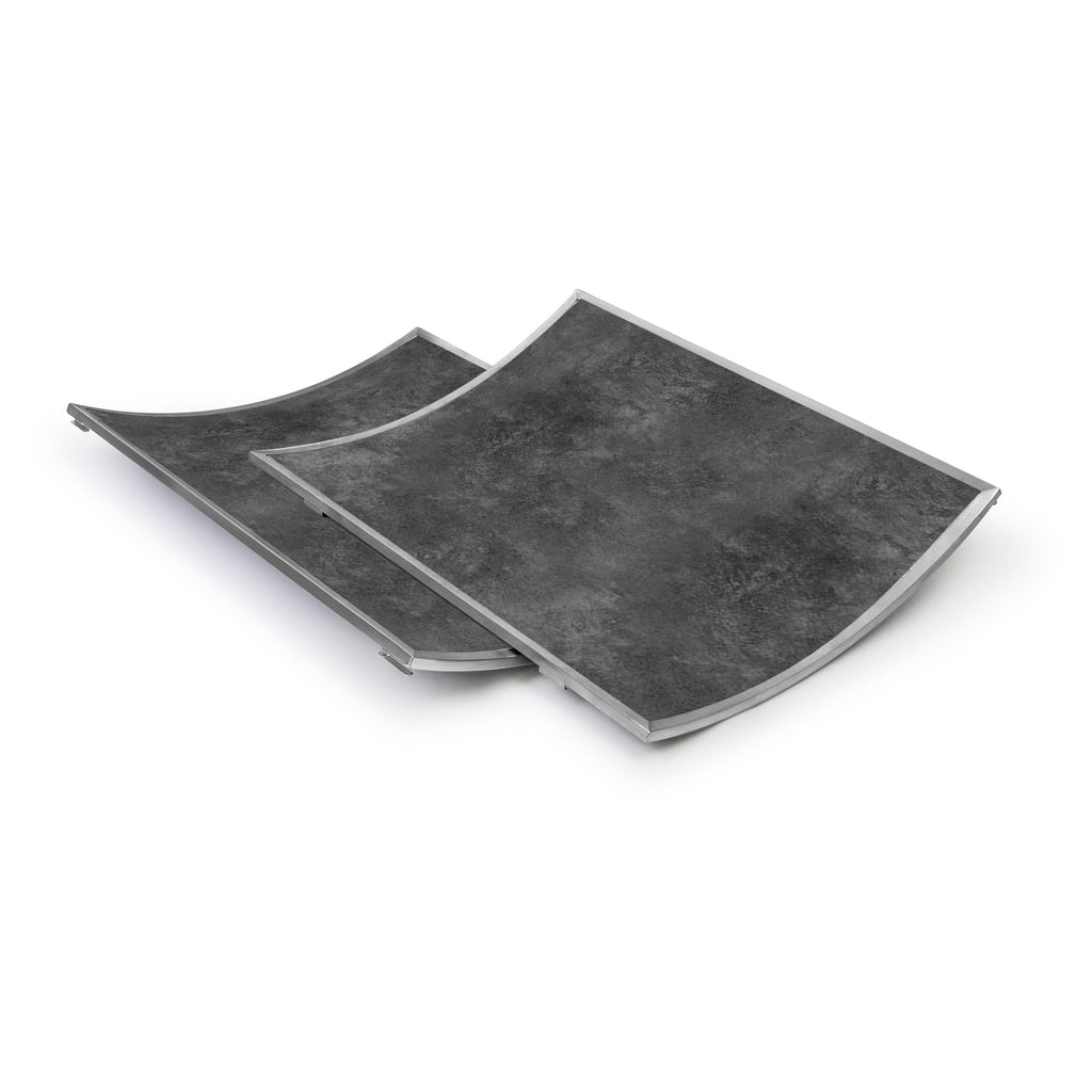• Details: (2) 28” x 21-1/4” panels hooks onto curved buffet table (ST5200) charcoal with stainless steel edge (set of 2)