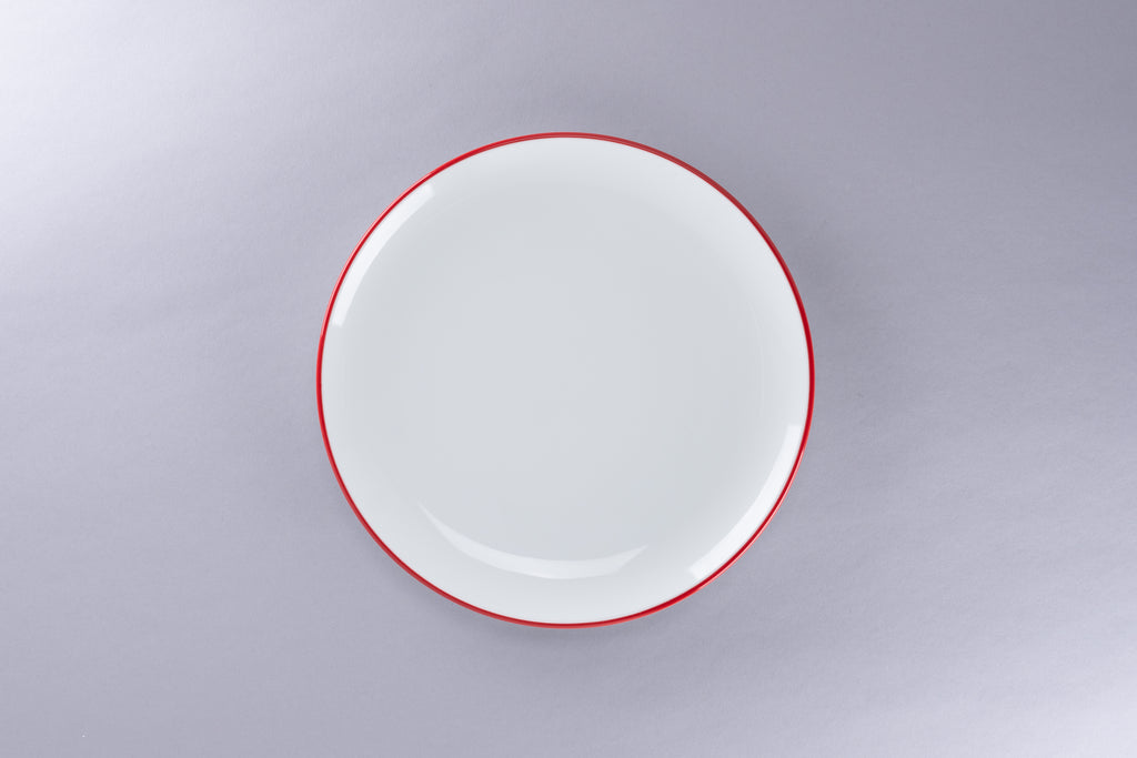 RIMZ FLAT COUPE PLATE WITH RED RIM, 8.2"D