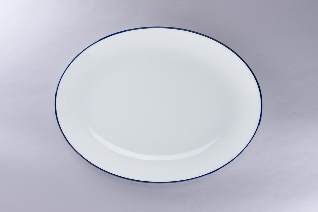 RIMZ OVAL COUPE PLATTER WITH BLUE RIM, 12.6"L, 9"W