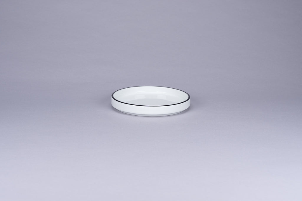 RIMZ STACKABLE FLAT RIMLESS PLATE / LID WITH BLUE RIM, 4.7"D