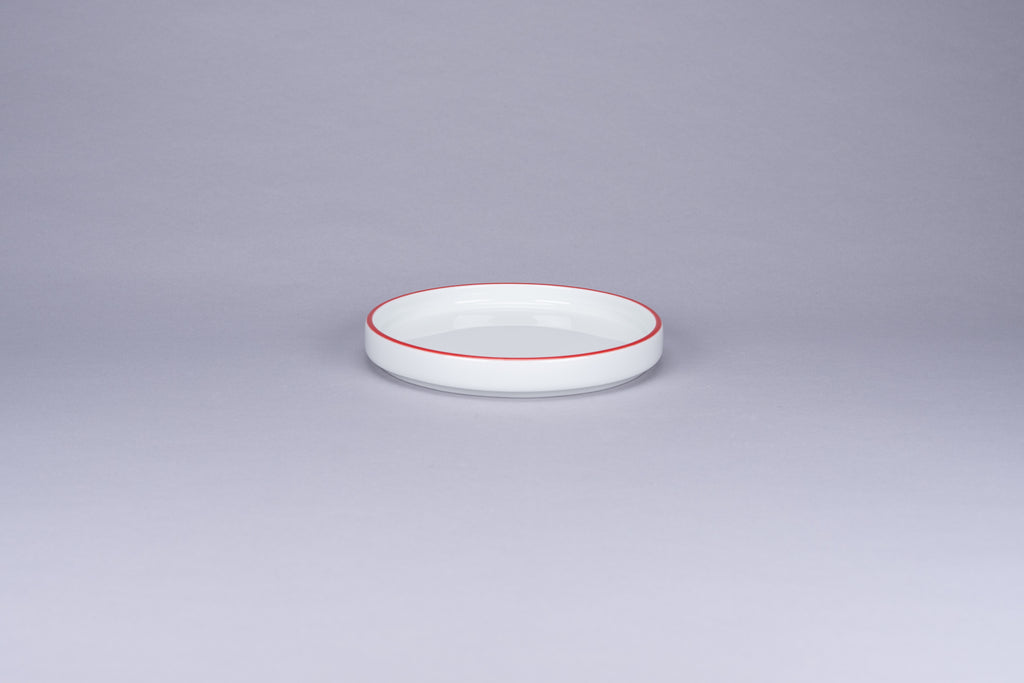RIMZ STACKABLE FLAT RIMLESS PLATE / LID WITH RED RIM, 5.5"D